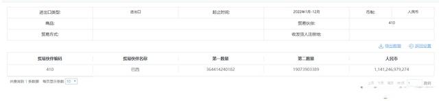 2022年中国与巴西的进出口贸易总额为11412亿元。